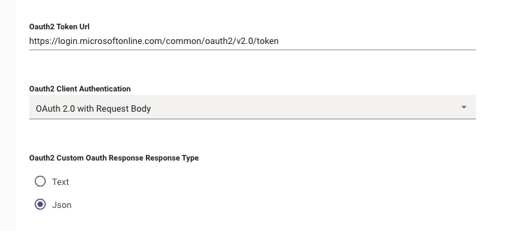 Lower on the connection configuration, add the token URL with the appropriate authentication type: