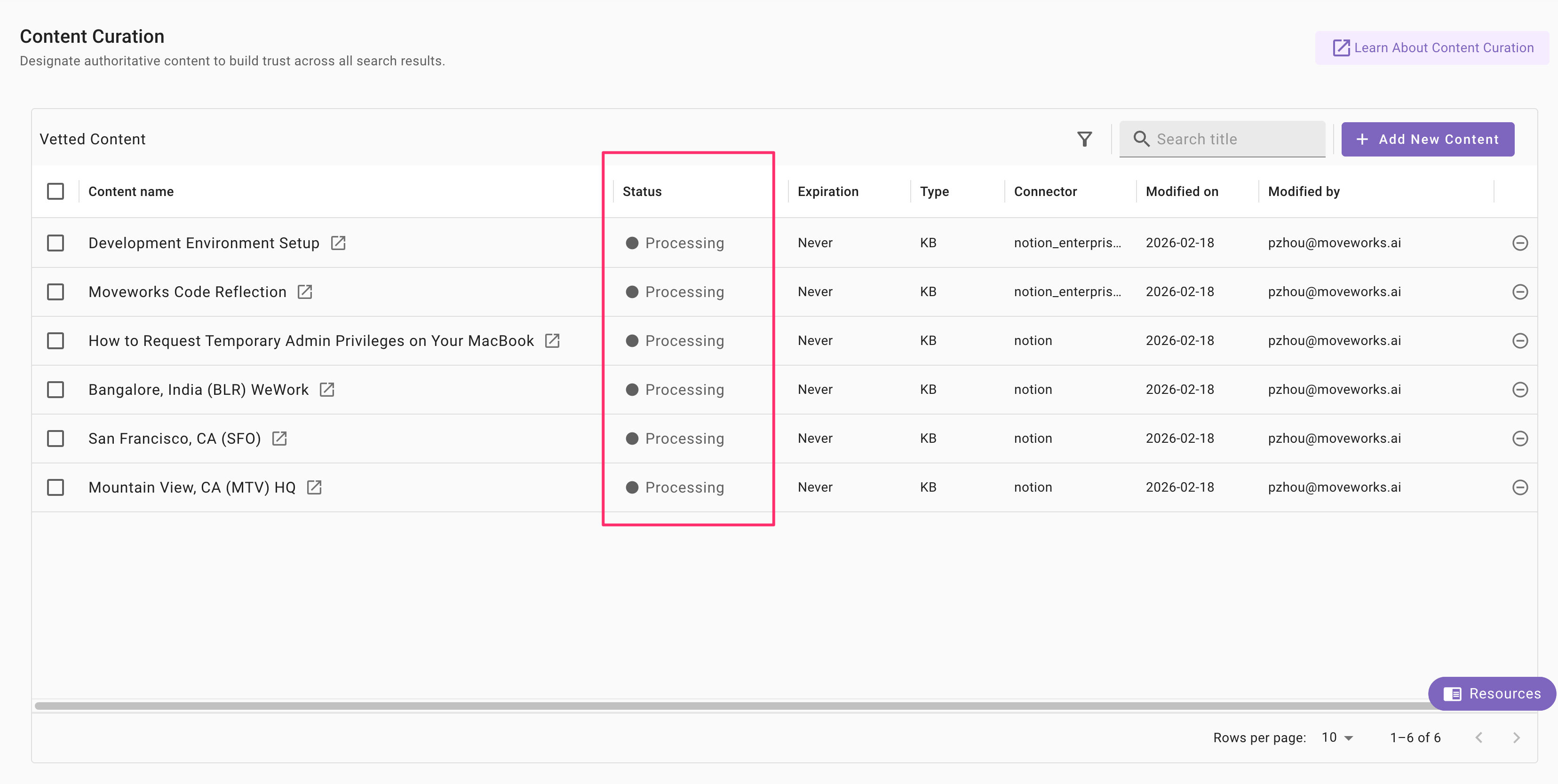 On the Content Curation page, you will see the status of these items as “Processing”. It will take up to 15 minutes for the vetted status to be reflected to the end user, once that’s done, the status will update to “Active”. You must refresh or revisit the page to see the update.