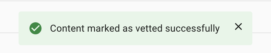 - Now your content has been successfully vetted. The system will take up to 15 minutes to reflect the vetted status.