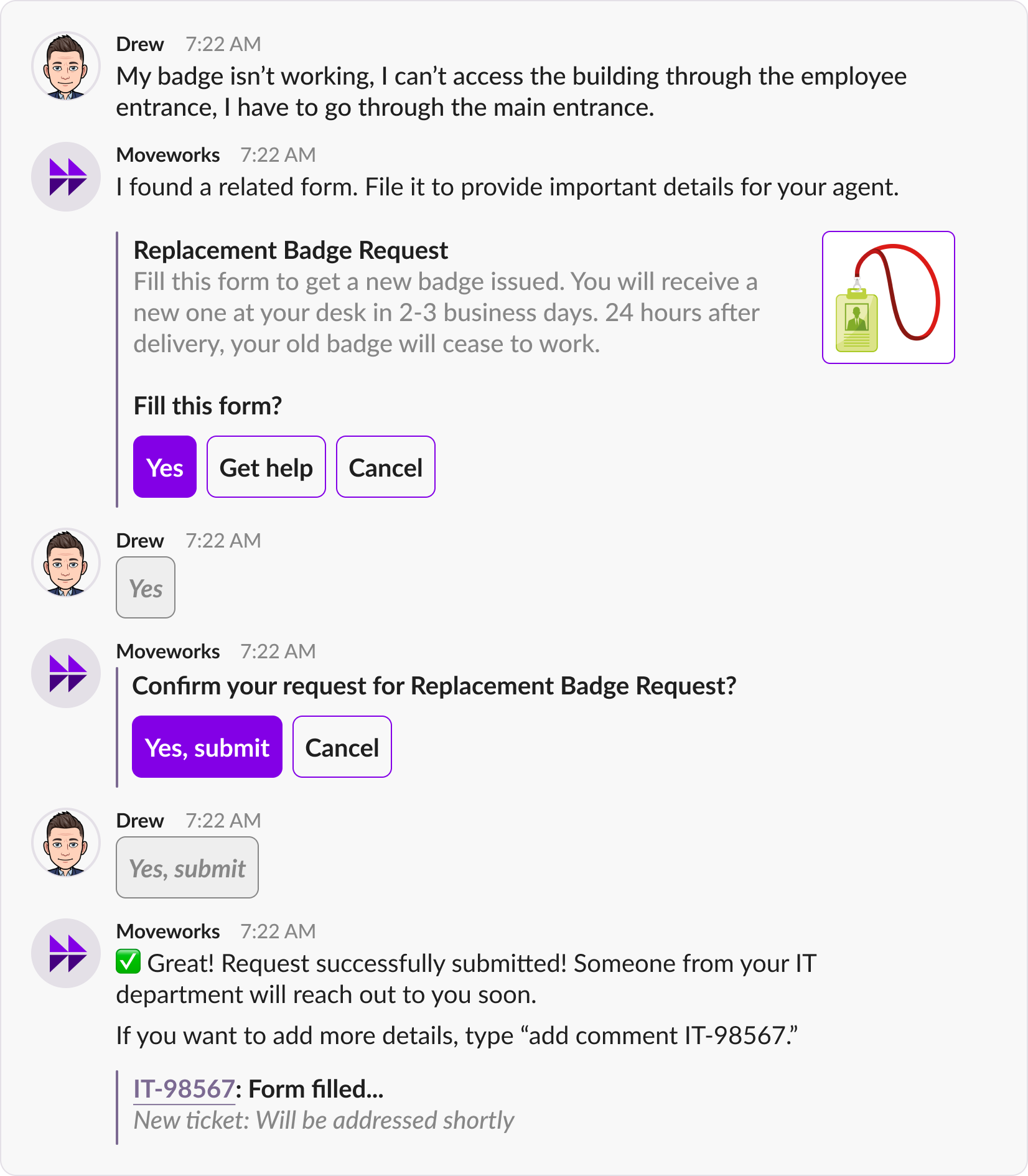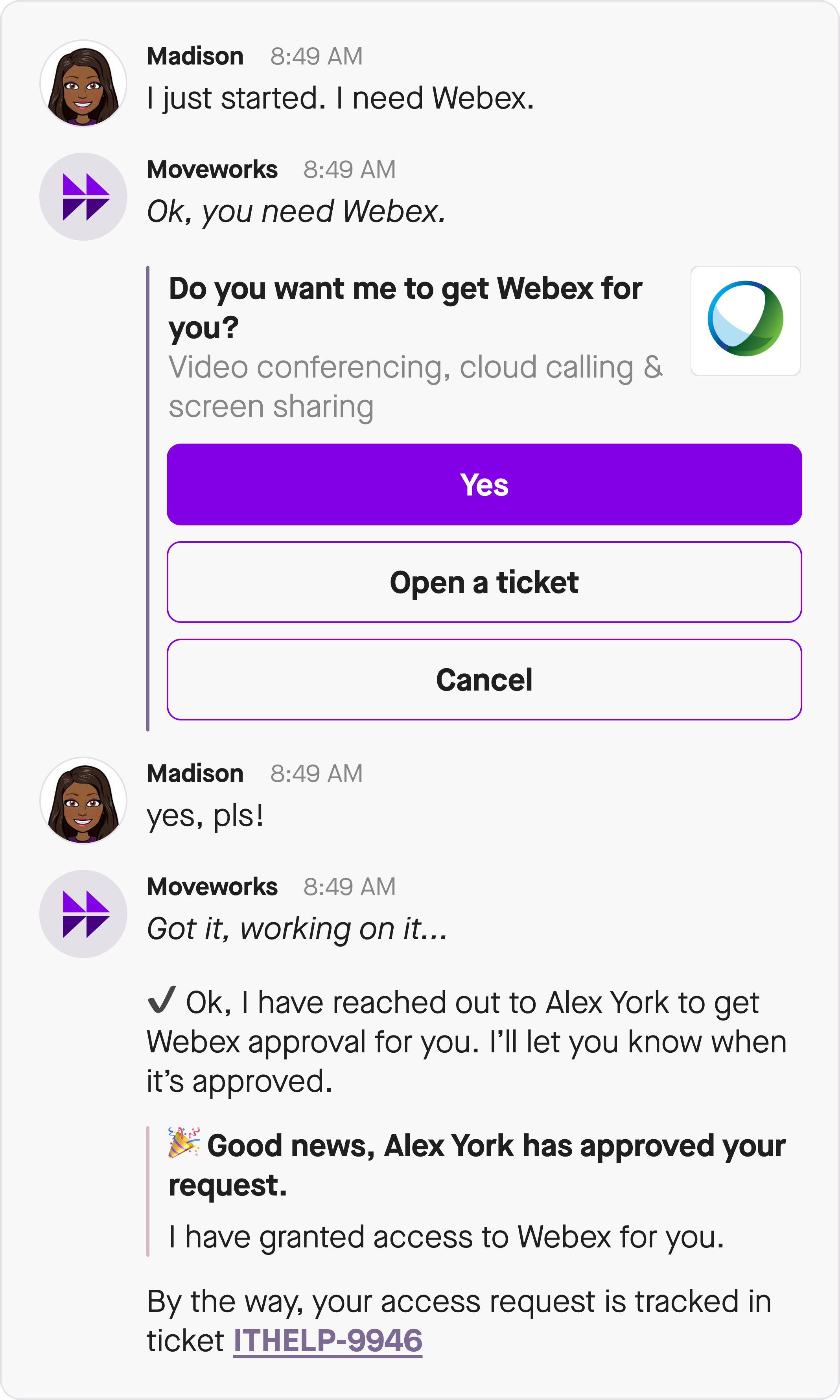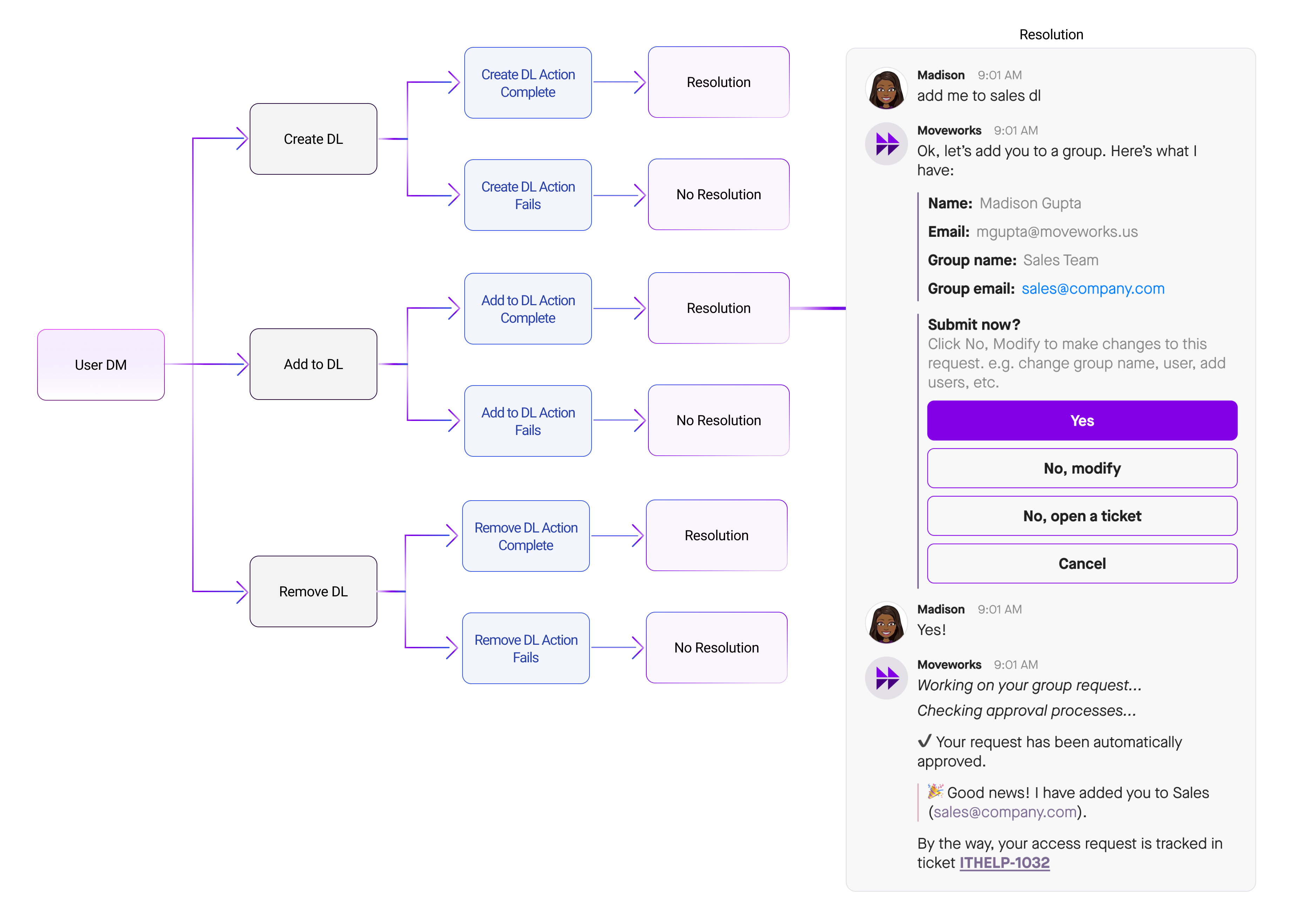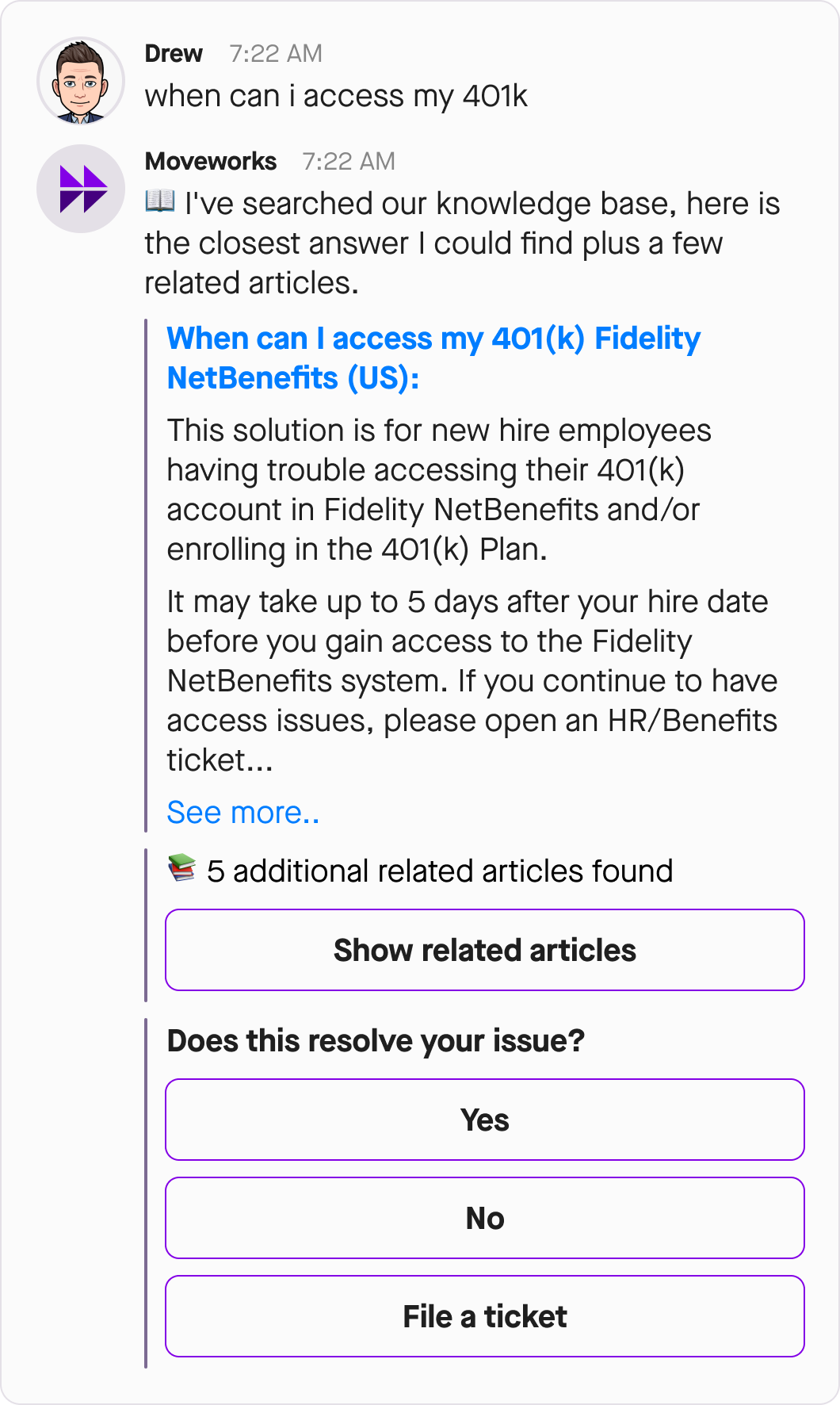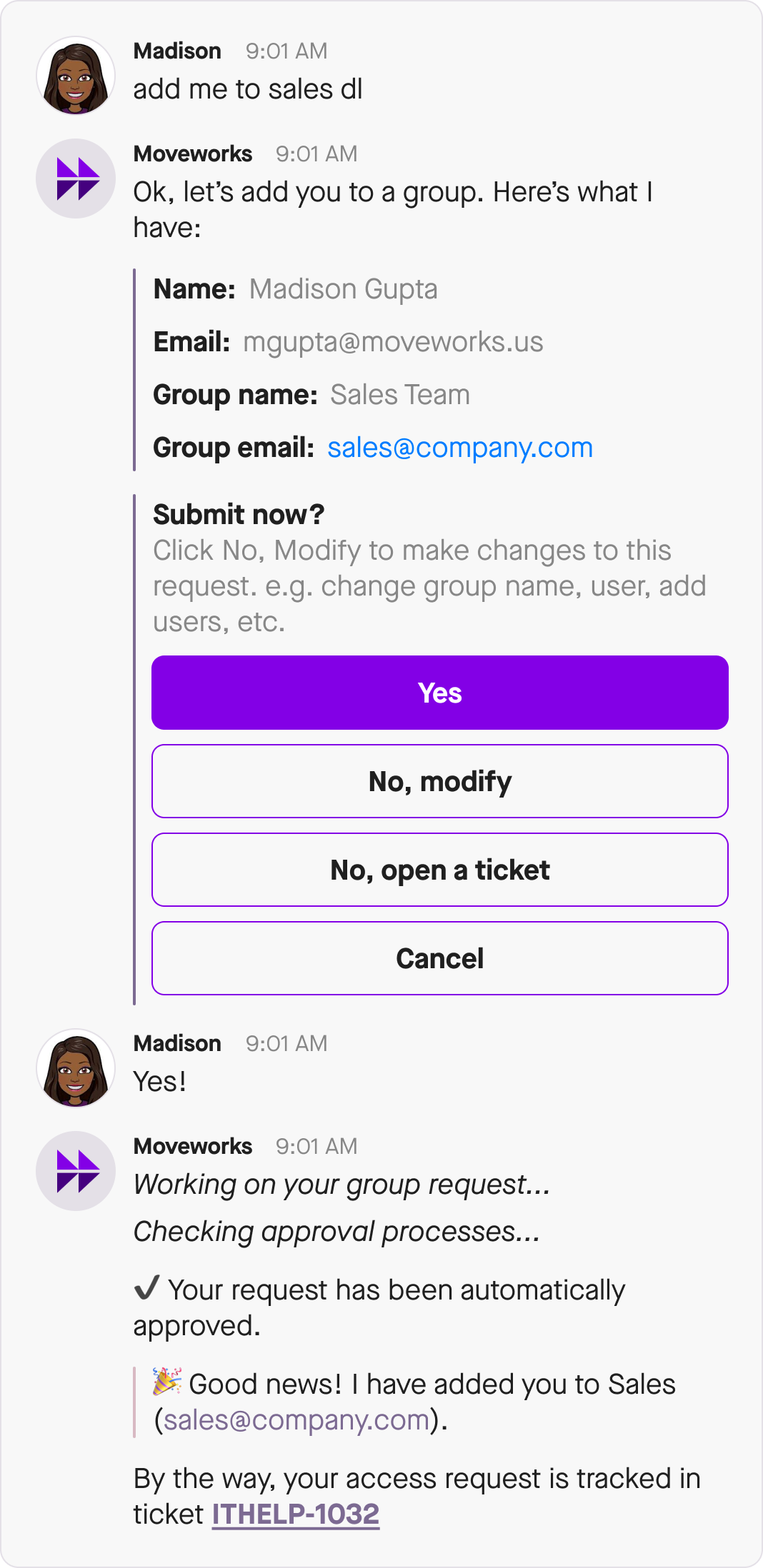Integrations with IDAM systems vary widely and as a result, so Moveworks recognizes three ways an account access issue being resolved by the bot: